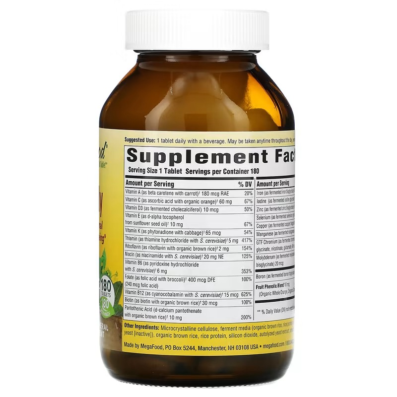 | **% Daily Value (DV) not established This MegaFood product is made with real food, wholesome nutritional yeast and added nutrients. †This vitamin is paired with a whole food in our unique process. |